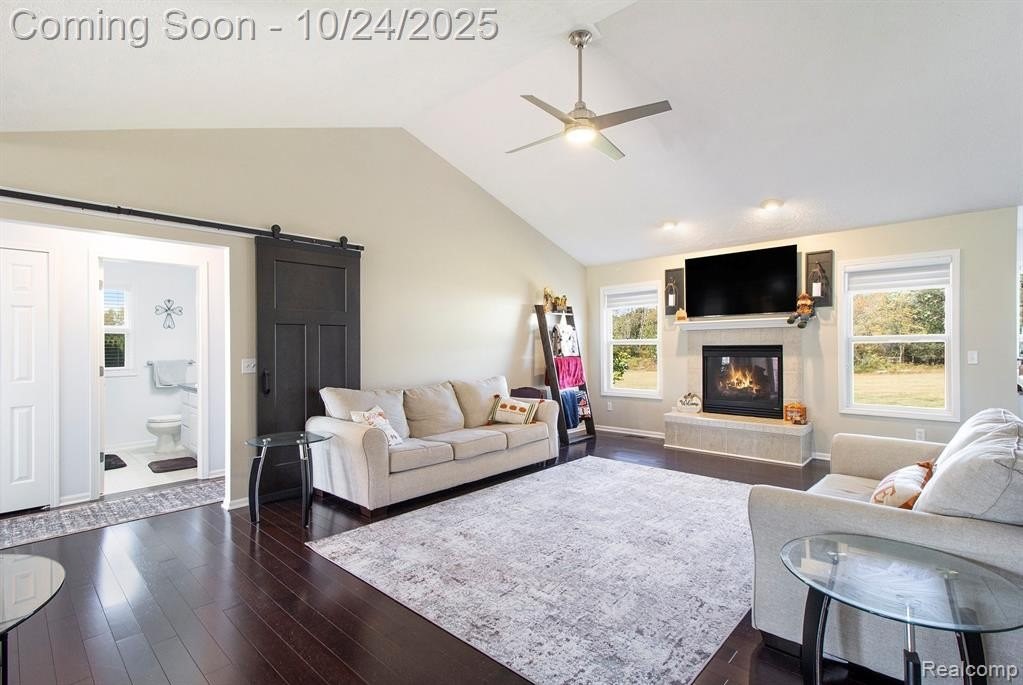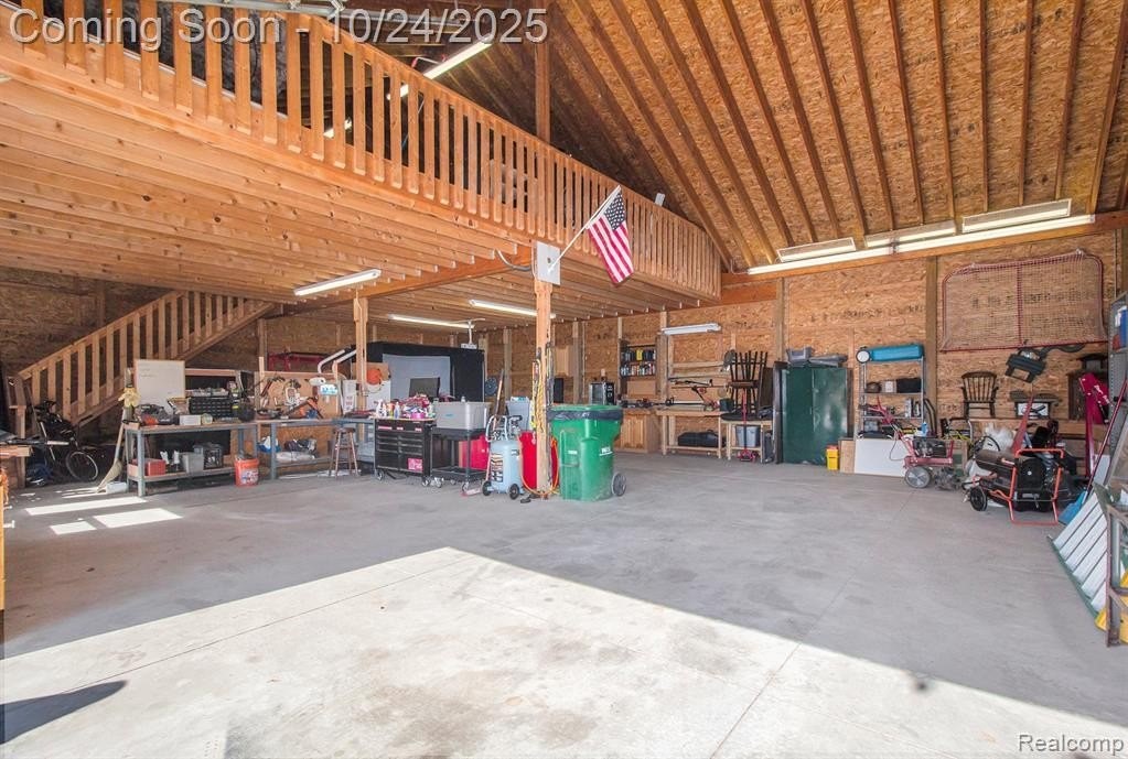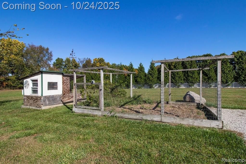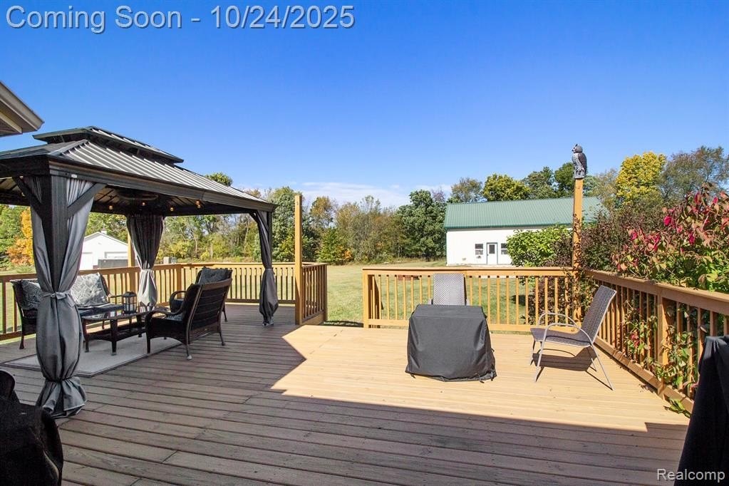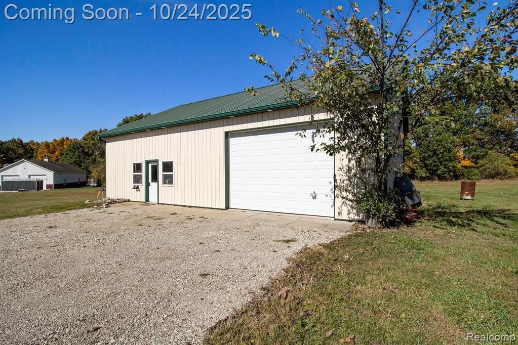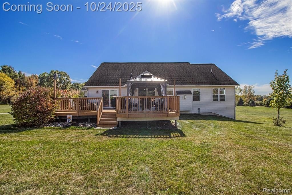 The sellers have requested an offer deadline of Monday, October 27 at noon Stop the car this could be just the perfect spot you've been searching for, Howell area, 5 acres, with a 1900 square-foot home perfectly positioned on the property plus pole barn with a loft....sure sounds like it! Spacious and open featuring cathedral ceilings in the Living room and oversized Primary suite, with split bedroom floor plan. Living room with cozy Gas Fireplace, open to the Formal Dining room. The Kitchen has loads of cabinets, built-in double oven (1) convection, and stainless appliances. Access the deck with gazebo from the dining area or the primary bedroom. Full Basement with daylight windows is the setting for the large family/recreation room, full bath, and closet, that could serve as an office. Geothermal system for high efficiency and cost savings, whole house on demand generator provides peace of mind, in the vent of a power outage. 50 x 35 outbuilding with loft, (Golf simulator equipment is not included), and fenced poultry space complete the package. Showings will begin Friday 10/24