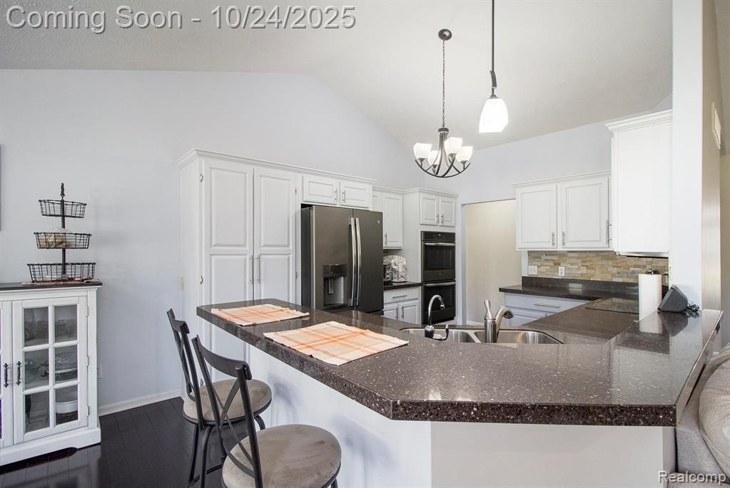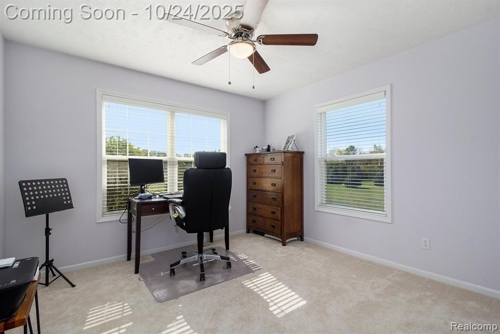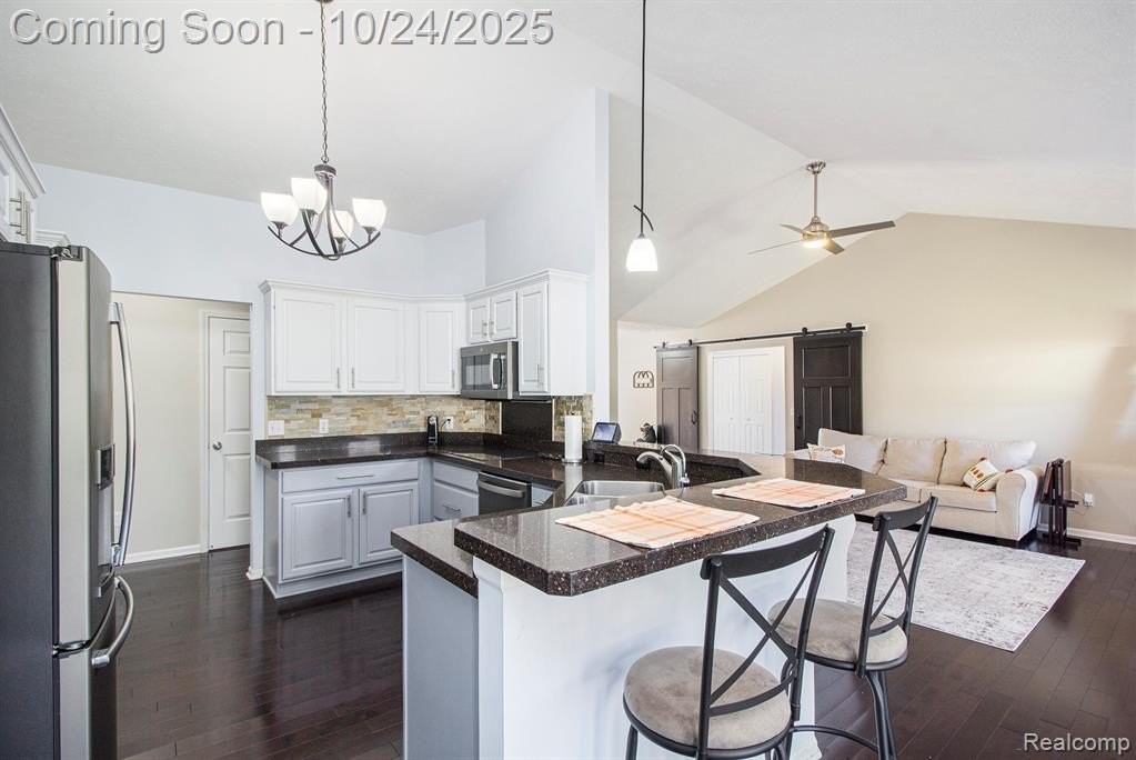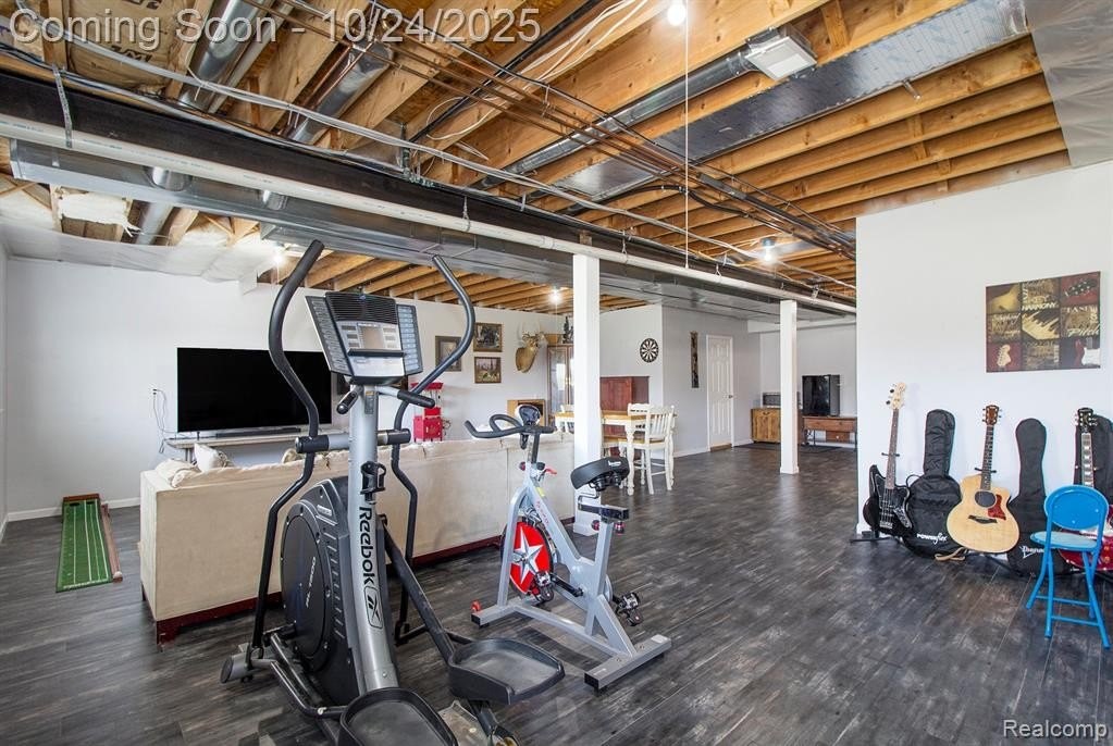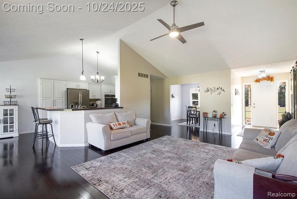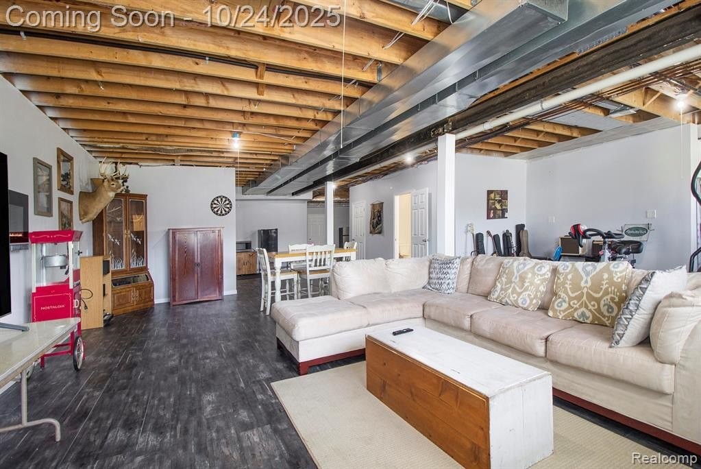 The sellers have requested an offer deadline of Monday, October 27 at noon Stop the car this could be just the perfect spot you've been searching for, Howell area, 5 acres, with a 1900 square-foot home perfectly positioned on the property plus pole barn with a loft....sure sounds like it! Spacious and open featuring cathedral ceilings in the Living room and oversized Primary suite, with split bedroom floor plan. Living room with cozy Gas Fireplace, open to the Formal Dining room. The Kitchen has loads of cabinets, built-in double oven (1) convection, and stainless appliances. Access the deck with gazebo from the dining area or the primary bedroom. Full Basement with daylight windows is the setting for the large family/recreation room, full bath, and closet, that could serve as an office. Geothermal system for high efficiency and cost savings, whole house on demand generator provides peace of mind, in the vent of a power outage. 50 x 35 outbuilding with loft, (Golf simulator equipment is not included), and fenced poultry space complete the package. Showings will begin Friday 10/24